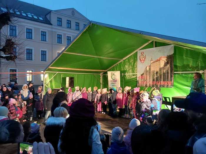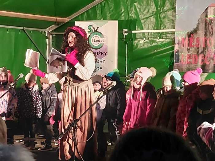 U příležitosti tradičního rozsvícení vánočního stromečku na ledečském náměstí, na první adventní neděli, vystoupily také děti naší mateřské školy. Předškoláci z pracoviště Stínadla obohatili kulturní program připravenými básničkami a písničkami, přispěli k vytvoření vánoční atmosféry a potěšili přítomné rodiče i veřejnost.