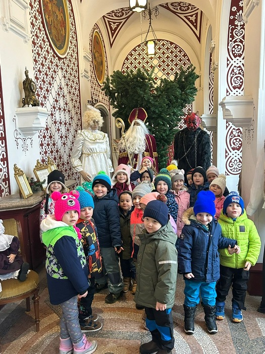 Ve čtvrtek 4.12. se naše dvě třídy, Berušky a Včeličky, vydaly společně na krásný předvánoční výlet. Děti nastoupily do autobusu plné očekávání a dobré nálady – už samotná společná cesta byla pro mnohé malým dobrodružstvím. Cílem výletu byla výstava s názvem Kouzlo Vánoc na zámku Světlá nad Sázavou, která dětem nabídla nejen sváteční atmosféru spojenou s nejkrásnějším obdobím roku. Děti si se zaujetím prohlížely vánoční dekorace, betlémy, ozdoby a mnoho rozsvícených stromků. Zaujaly je také příběhy o tom, jak Vánoce slavili lidé dříve, a jak se některé tradice zachovaly dodnes. Velké poděkování posíláme paní Janě Štěpánkové z Ledče nad Sázavou, která byla naší průvodkyní a dětem laskavě vyprávěla, co vidí v každé nazdobené místnosti zámku. Nechybělo fotografování na saních a sáňkách, kde dětem zářily oči stejně tak jako nespočet světýlek. Po skončení výstavy čekala děti ještě veselá cesta autobusem zpět do školky, během které si sdílely své dojmy a zážitky. Výlet byl nejen krásným zpestřením školního programu, ale také milou příležitostí pro společné zážitky obou tříd. Už nyní se těšíme na další dobrodružství, která nás čekají při dalších výletech.