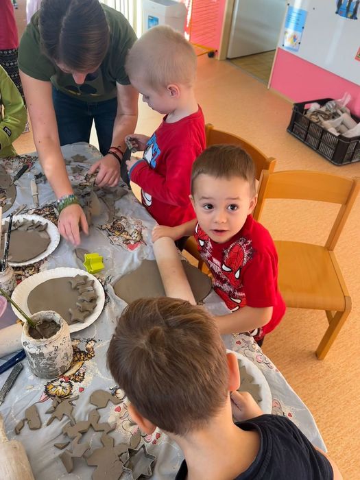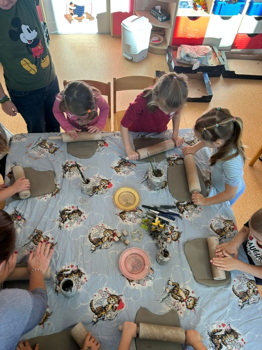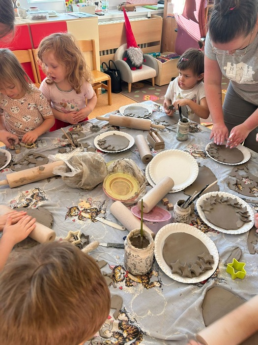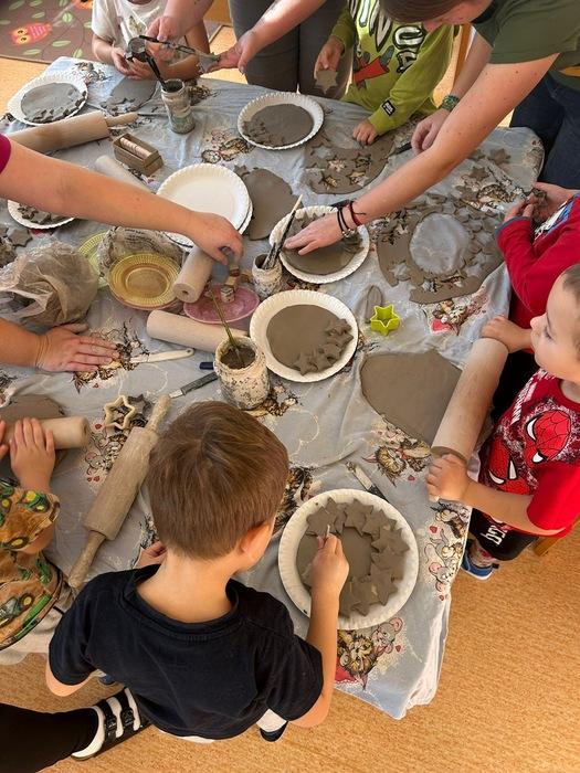 Atmosféra byla plná radosti, soustředění i zvědavosti. Děti objevovaly, jak zajímavě může hlína reagovat na dotek, jak lze vytvářet různé otisky či zdobení a jak se z obyčejného kousku materiálu může stát něco krásného a osobního.