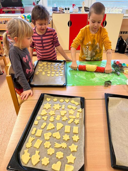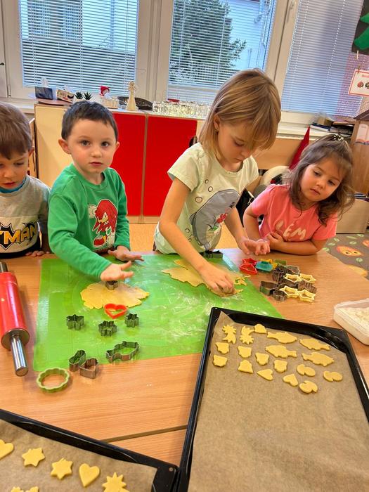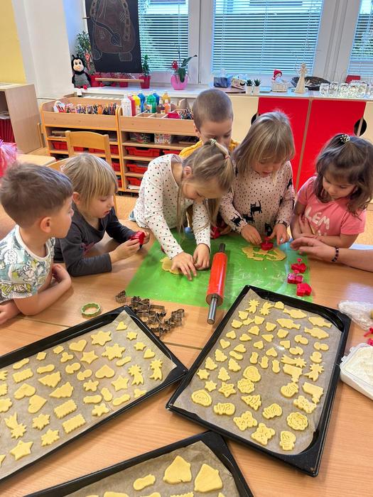 V Beruškách se v posledním listopadovém týdnu usadil pravý předvánoční ruch a očekávání. Příprava kostýmů, nácvik na vystoupení pro rodiče, výzdoba třídy a šatny, zdobení stromečku, výroba přání pro klienty Domů a pečovatelskou službou a také rodiče. Děti se také s nadšením pustily do pečení cukroví, což patří k oblíbeným tradicím tohoto období. S radostí vykrajovaly nejrůznější tvary – od hvězdiček a stromečků až po srdíčka a malé zvonečky. Děti se učily nové básničky, krátké říkanky i jednoduchý taneček, aby jejich vystoupení bylo krásným dárkem pro rodiče i všechny přítomné. Velkým zážitkem pro všechny byla výuka vánoční písně Veselé Vánoce ve znakové řeči. Děti se s obdivuhodným zaujetím učily jednotlivé znaky a rychle pochopily, jak mohou díky nim sdělit radostné přání i beze slov. Nácvik probíhal s velkým nadšením, a když se dětem podařilo sladit zpěv se znakováním, byl to opravdu krásný okamžik – jako by se v jejich malém předvánočním světě propojily všechny smysly.