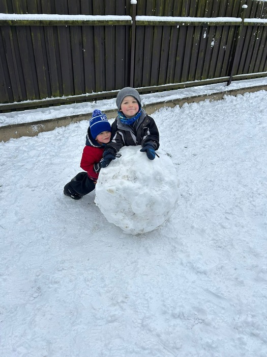Na programu nebylo nic menšího než stavění sněhuláka. Berušky se okamžitě pustily do válení sněhových koulí – a samozřejmě se mezi sebou předháněly, kdo zvládne udělat tu největší. Smích se ozýval celou zahradou, sněhové koule rostly a rostly, až nakonec povídaly, že to bude iglú.