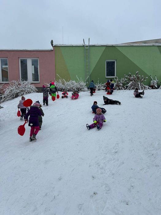 Děti zamířily také k malému kopečku, kde začalo sjíždění na „lopatách“. Z kopce se ozývalo nadšené jásání a každá jízda byla „nejrychlejší“ a „nejlepší“, jak děti s nadšením oznamovaly.