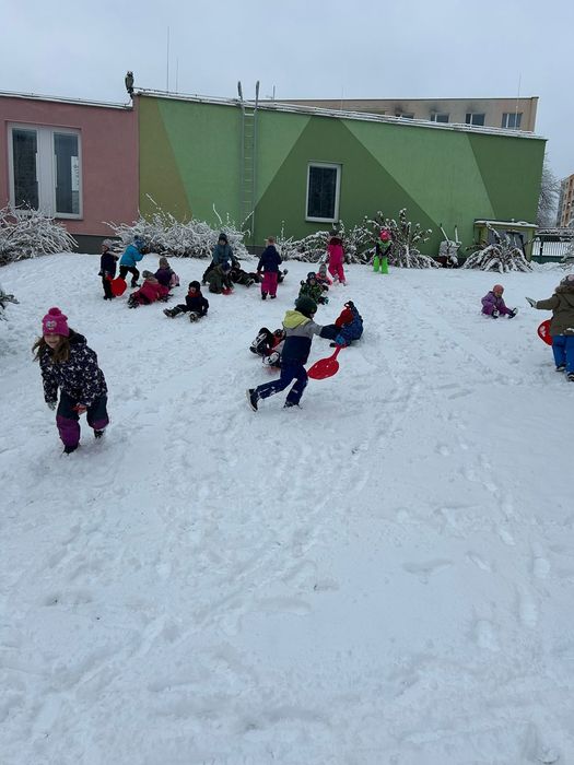 Konečně jsme se koncem listopadu dočkali! První sněhové vločky dopadly na školní zahradu i na nosíky našich malých Berušek a v tu chvíli bylo jasné, že nás čeká den plný zimních radovánek. Děti s nadšením pozorovaly, jak se svět kolem nich mění v bílou pohádku, a jejich rozzářené oči prozrazovaly, že zima je jejich velká kamarádka.