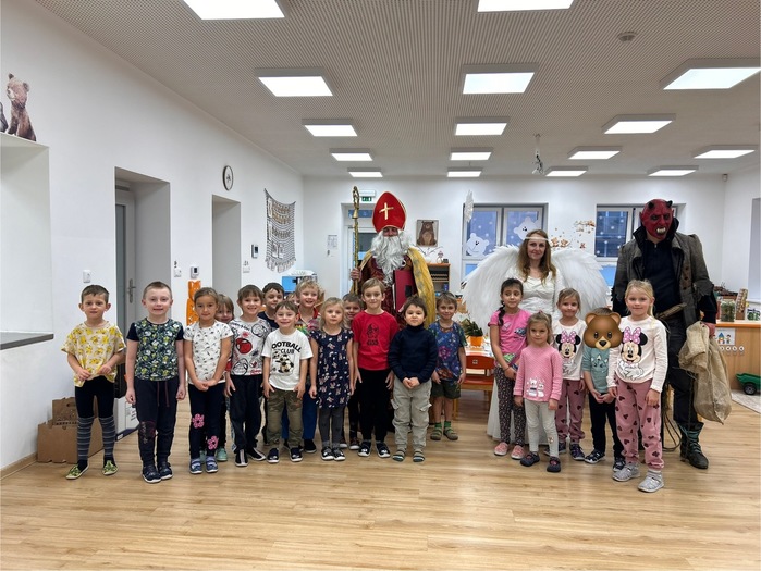 V pátek 5.12. jsme v naší třídě přivítali vzácnou návštěvu - Mikuláše s andělem a čertem. Každý statečně a s respektem přistoupil k Mikuláši, ten pronesl několik slov a hodný andílek ho obdaroval nadílkou.