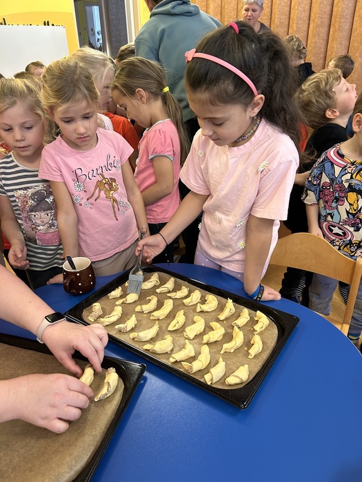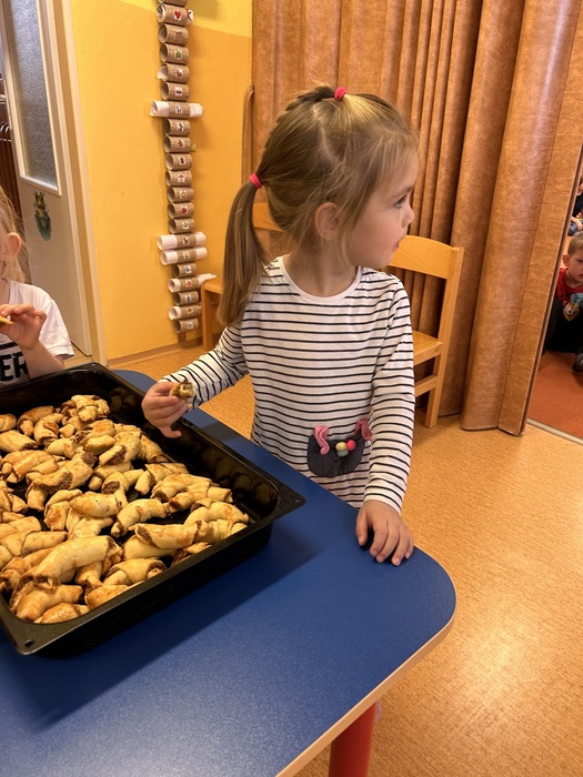 Medvídci navázali hezkou spolupráci se třídou Žabiček z MŠ Stínadla. 24. září k nám Žabky zavítaly na pečení jablečného štrůdlu, společné hraní a prohlídku naší nové školky. Bylo to příjemně strávené dopoledne. 10. listopadu jsme návštěvu oplatili a vydali se k Žabičkám, kde jsme pekli svatomartinské rohlíčky, užili si spoustu her a zábavy. Děkujeme a těšíme se na příště!