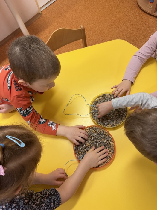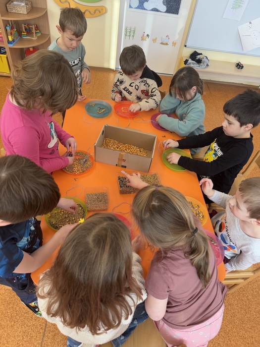 Zimní počasí je čas na různé experimenty. A tak děti ze třídy motýlků vyzkoušely zmrzlé ozdobičky pro ptáčky. Jeden den děti naplnily talířky různými semínky, které následně zalily vodou. A druhý den zjistily, co se s vodou stalo následkem nočních mrazů. Ozdobičky poté pověsily ptáčkům na zahradu mateřské školy.