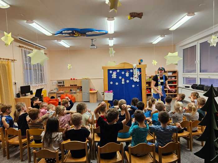 Klaun Fugo se svým zimním představením zavítal také k nám. Děti se hravou formou seznámily se zimou jako ročním obdobím, zapojily se aktivně do děje, zpívaly, tančily a užily si spoustu legrace.